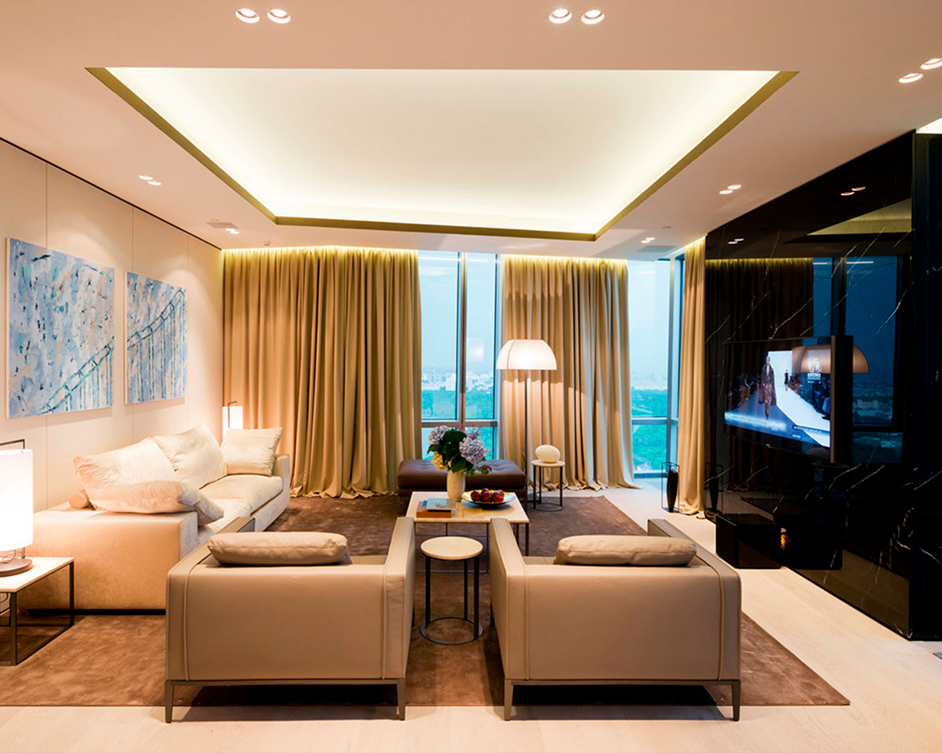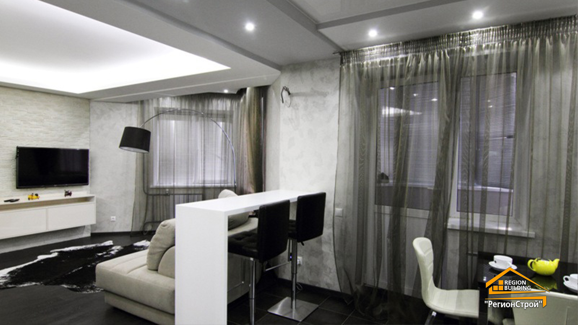 - Дизайн-проект, материалы черновые и чистовые, включая натяжные потолки, светильники и элементы интерьера.